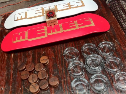 shouts to Memes … visuals from this past weekends benefit for Japan with custom lasered DUBDIME + ETCHADECK + WOOD SHOCK products